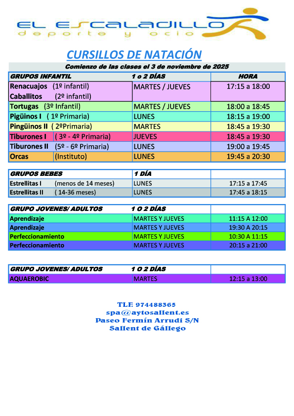 cursillos de natación - Polideportivo El Escaladillo-Aguas Limpias SPA